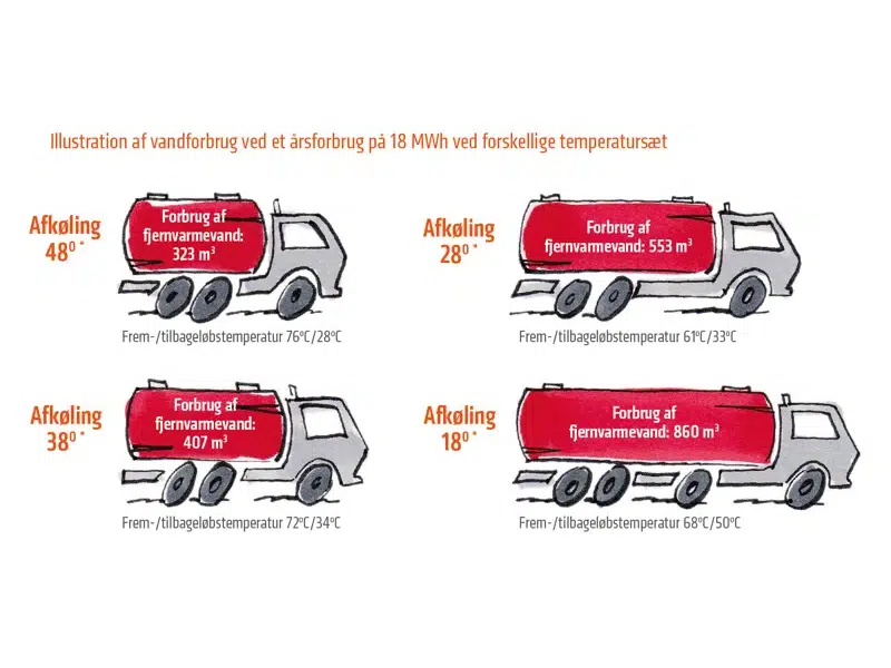 Jo højere returtemperaturen er, jo mere fjernvarmevand skal du bruge for at varme din bolig op, og jo mere varme skal vi producere.